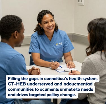 Filling the gaps in Connecticut's health system, CT-HEB connects underserved and undocumented communities to care, documents unmet health needs, and drives targeted policy change.